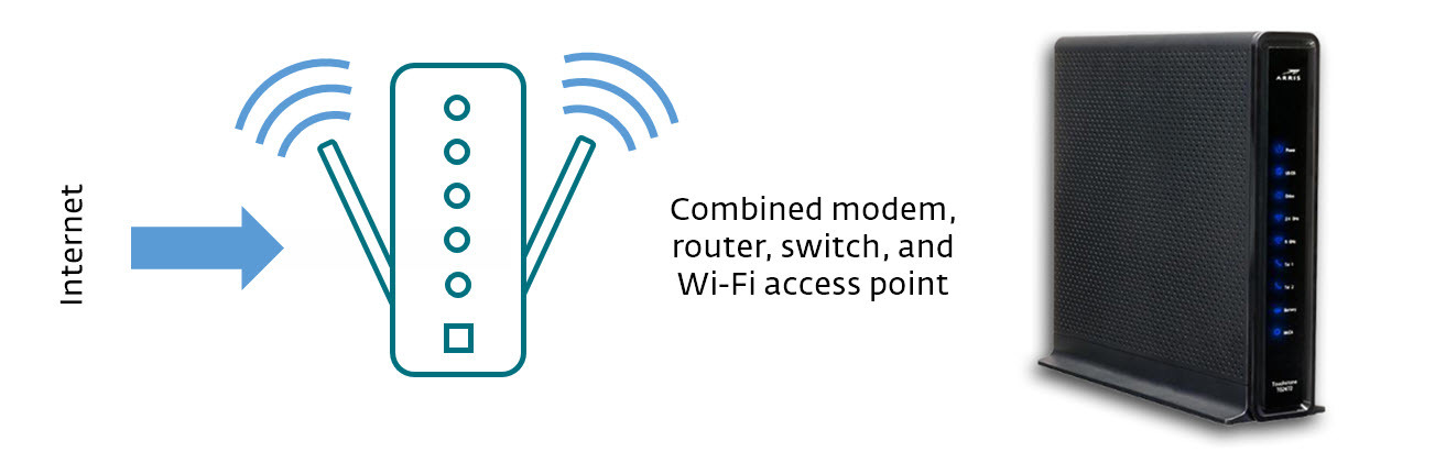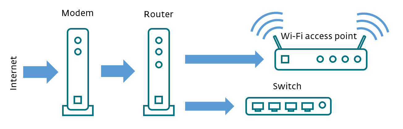 Esta disponibilização da Internet pode ser feita sem fios, através de um ponto de acesso Wi-Fi, através de cabos Ethernet ou através de um switch. O sinal do seu ISP necessita de passar por um modem antes que o router envie o sinal de rede para o dispositivo correto. O diagrama a seguir explica como funciona: