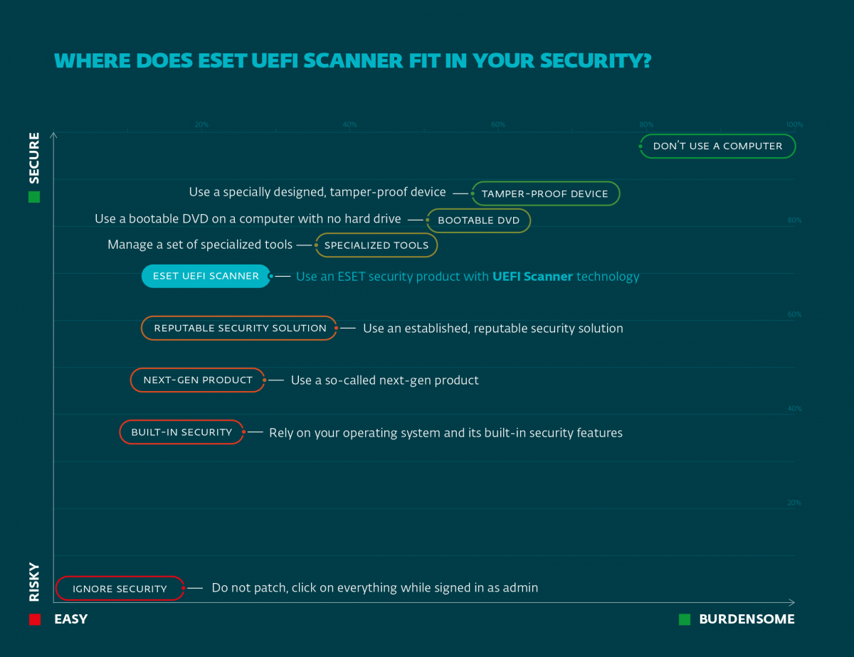 Para além de mostrar fortes recursos na identificação de executáveis ​​UEFI suspeitos, a abordagem de learning-machine reduziu a carga de trabalho dos analistas da ESET em até 90% (se analisassem todas as amostras recebidas). Graças ao facto de que cada novo executável UEFI recebido é adicionado ao conjunto de dados, processado, indexado e levado em consideração para as próximas amostras recebidas, a solução oferece monitorização em tempo real do cenário UEFI.
